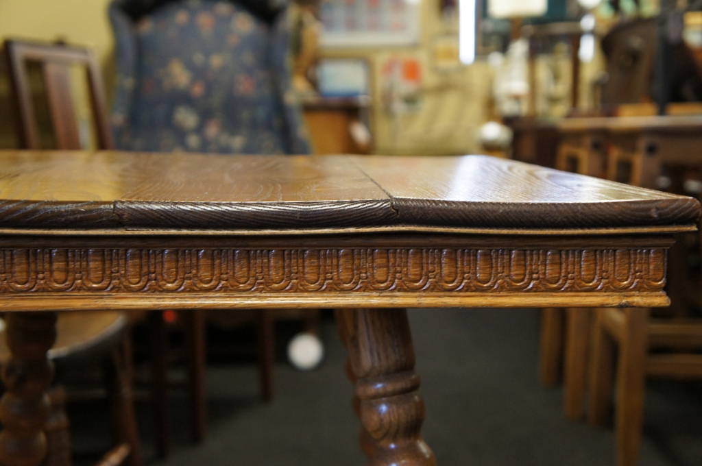 The table top has warped over the years. Otherwise light wear from use and age. There is a slight wobble in the top of he table. See Pictures