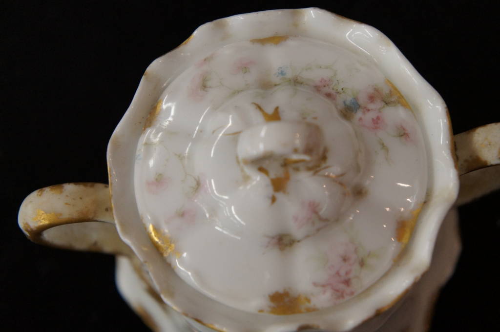 This is a beautiful piece from Haviland & Co. It is a floral Sugar Bowl with a lid and it features a lovely gold trim to it. This is a beautiful piece and it would make a wonderful addition to your home or collection.