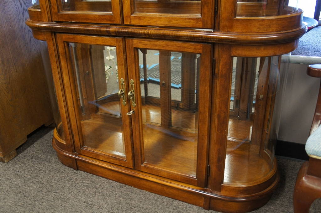 Unique Pulaski Curio Cabinet Rounded Glass Sides China Display Case Curved Bowed
