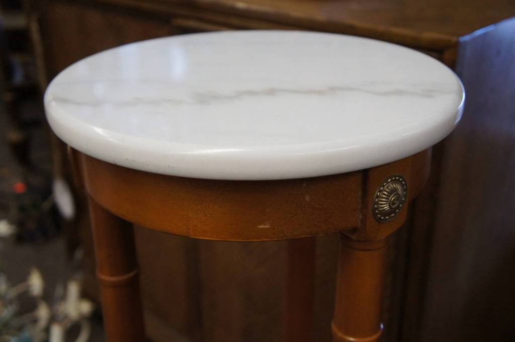 Three Legged Marble Top Pedestal Stand Hall Table Tall Skinny Wooden Metal