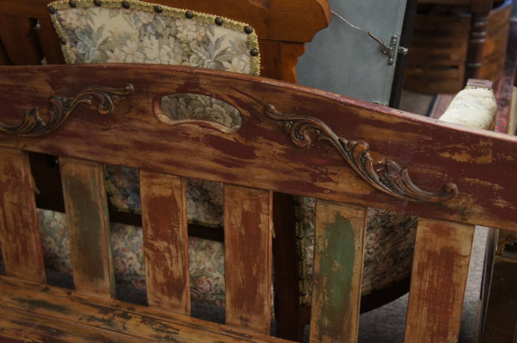 Rustic Painted Wooden Bench Storage Compartment Chair Love Seat Arms Sittee