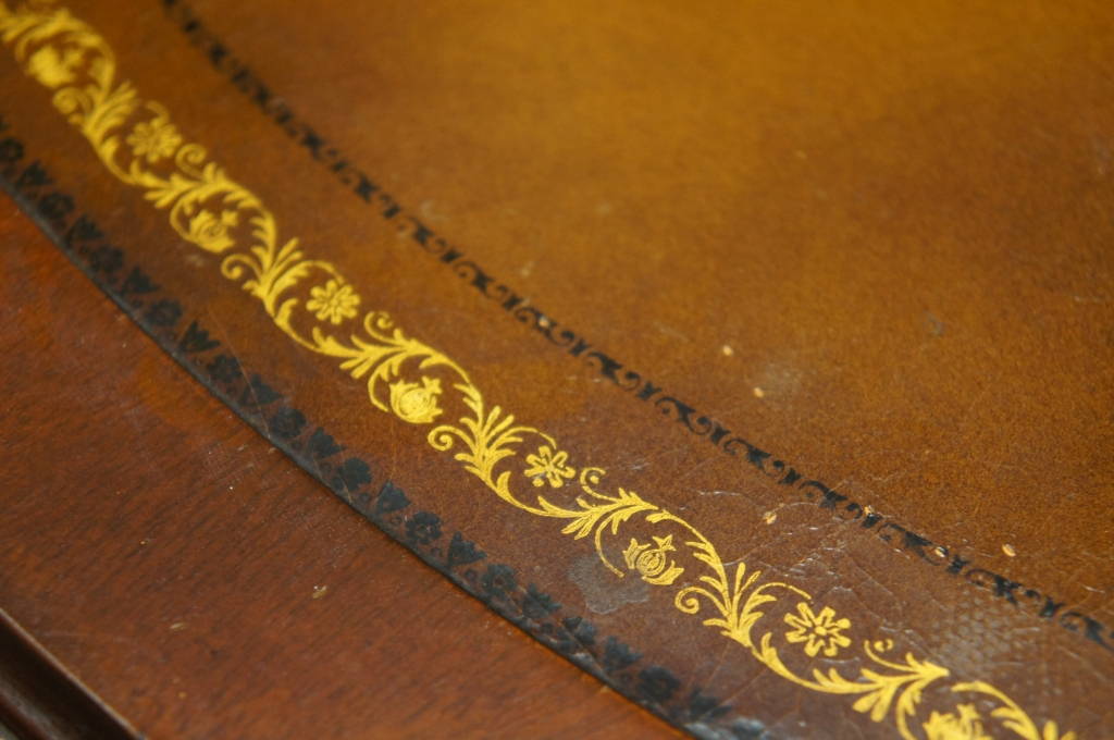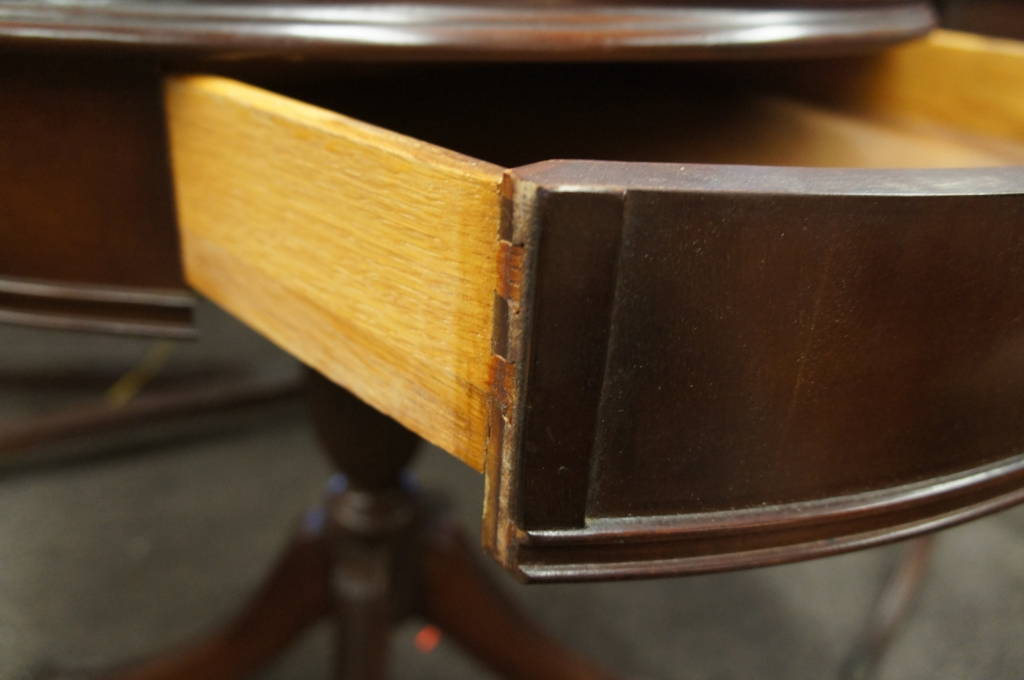 Vintage Mahogany Leather Top Drum Table Round Writing 1 Drawer Handles Antique