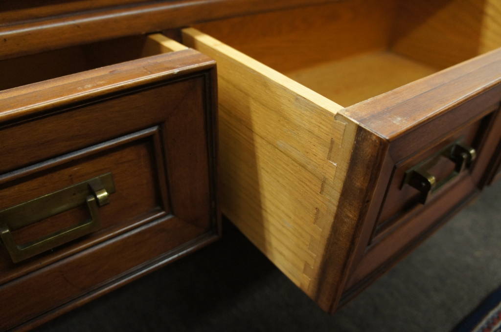 Nice Wood Coffee Table Dove Tailed Two Drawers Rectangular Quaint Parquetry Top
