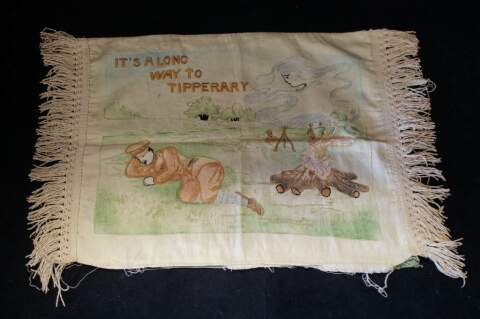 Antique WWI Great War Tapistry Piano Shawl Hand Embroidered Soldier Irish RAF