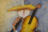Here is a nice piece by roybal. It features a boy playing a cello in acrylic or oil paint.
