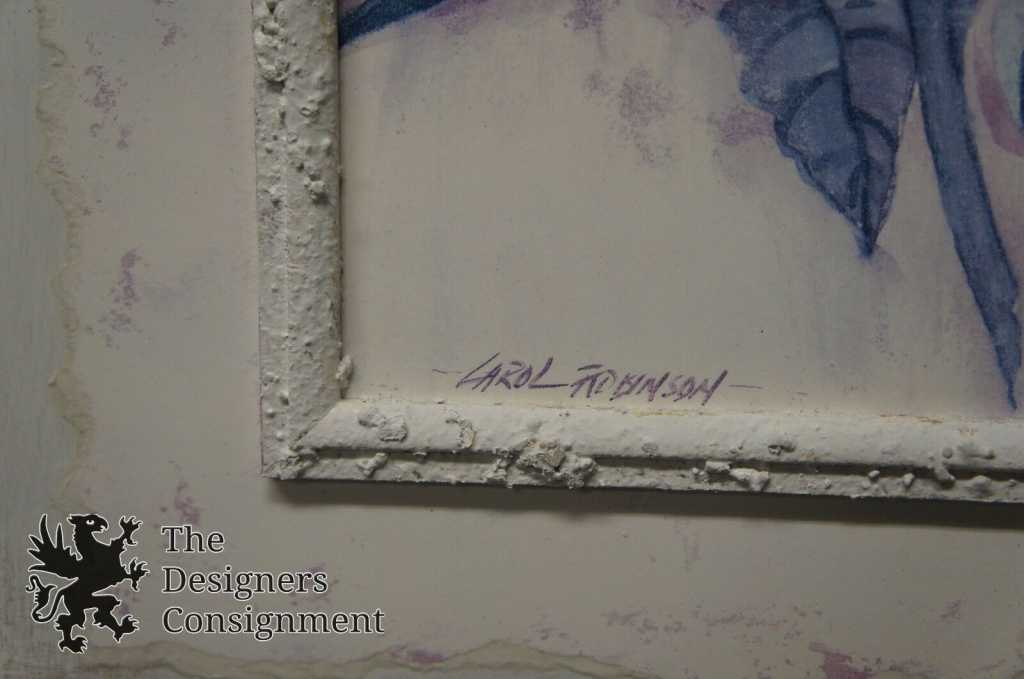Pair of White Plaster Pastel Floral Paintings Iris and Rose Carol Robinson