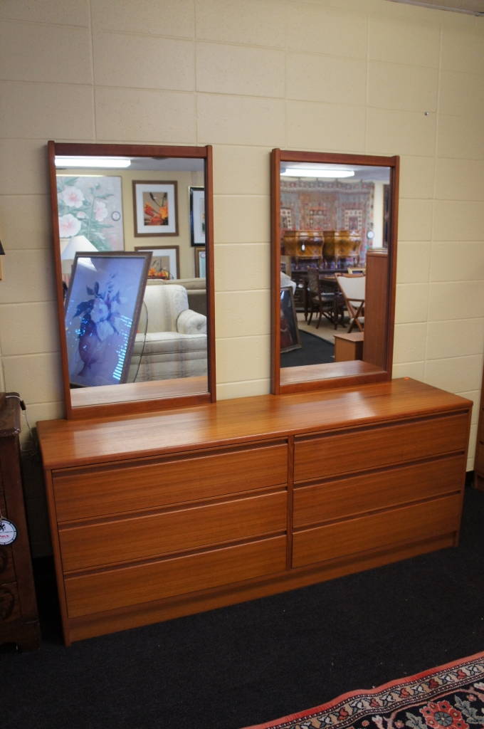 Danish Modern Teak Dresser 6 Drawers Vanity Mirrors Mid Century Style Torring