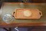 This is a gorgeous piece of kitchenware. It is a mid-century Cheese dome/snack tray that was made by Julie Pomerantz out of Thai Teak Wood. This piece has a lovely medium wood color to it and it has a glass dome and sleek body type to it. This is an absolutely beautiful piece and it would make a wonderful addition to your home or collection.