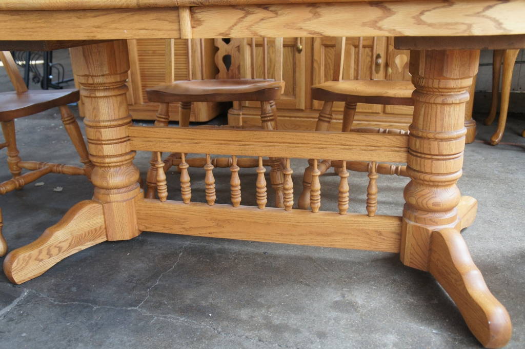 Richardson Bros Solid Oak Trestle Table 6 Chairs 1 Arm Side Leaves Farm Country
