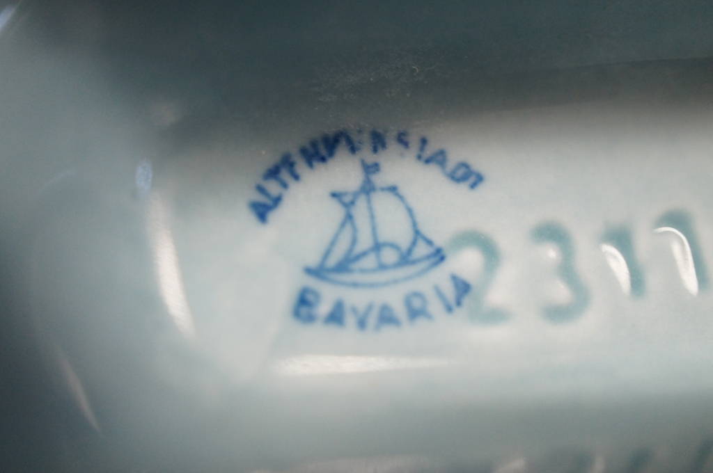 Lovely Blue Antique Porcelain Round Handled Donut Shaped Floral Flask Decanter