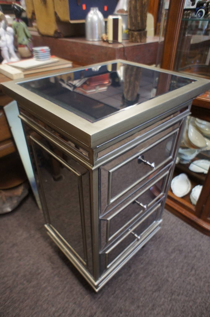 Fancy Mirrored Night Stand Chest Modern Vanity Glamorous Hollywood Regency Shelf