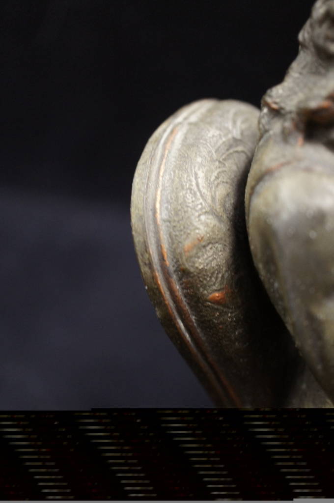 Very Cool Antique Spelter Statue Sir Isaac Newton Reading In Chair With Cane