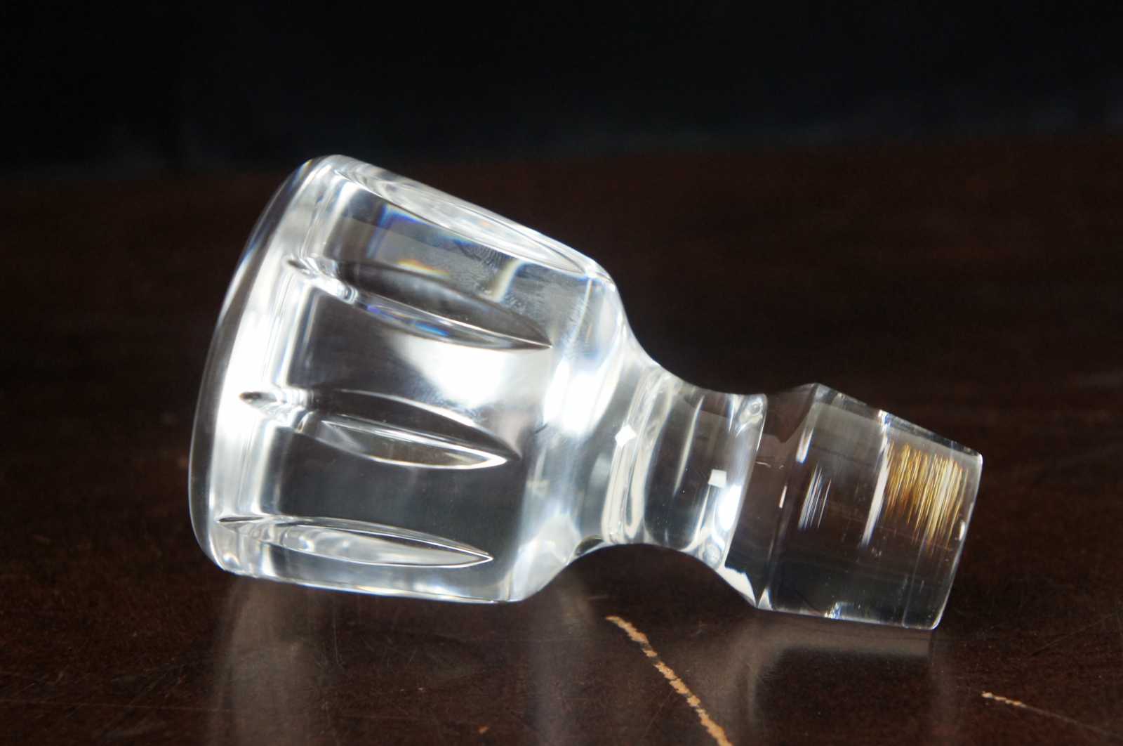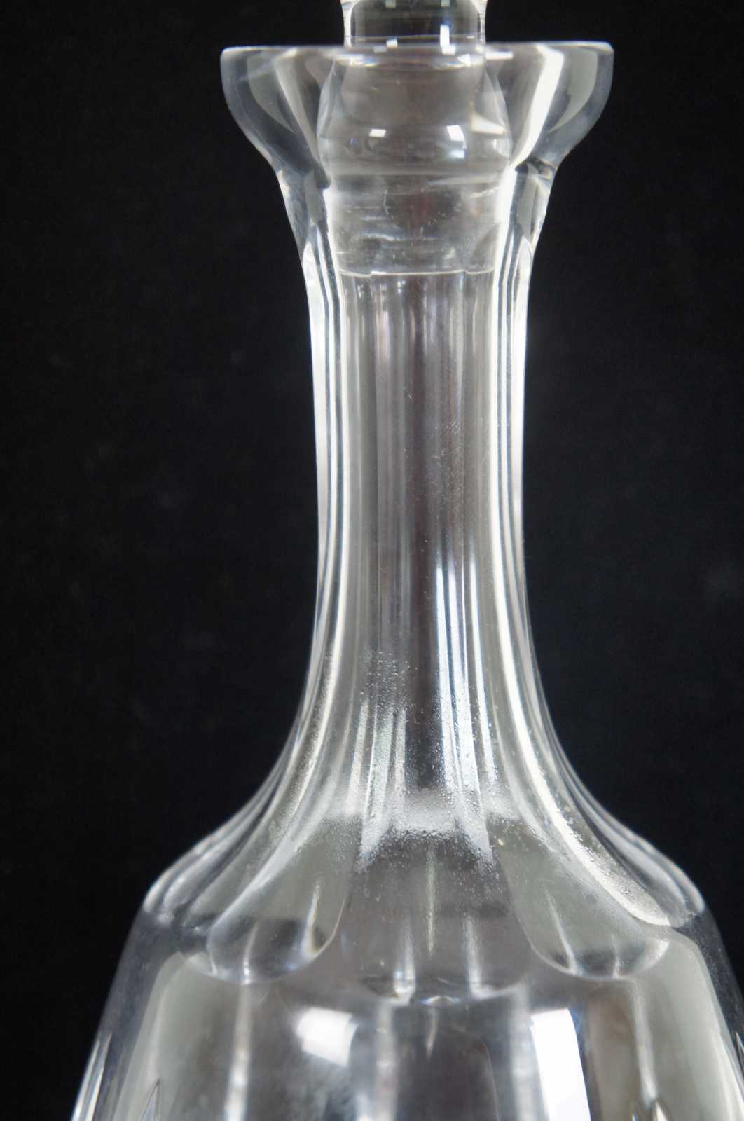 Vintage Atlantis decanter in the Fatima pattern. Features shaved glass on glass stopper and heavy leaded crystal.