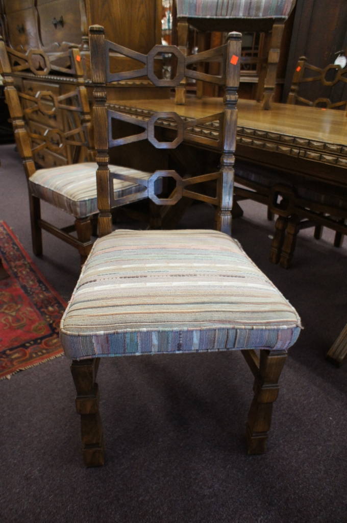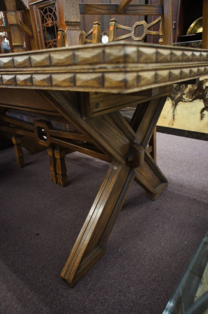 Vintage Romweber Viking Oak Dinner Table & 6 Chairs Set Arm Side Trestle Nordic