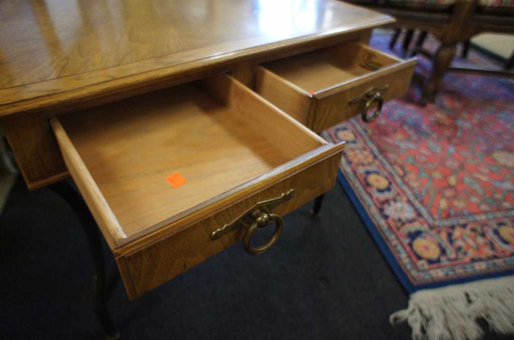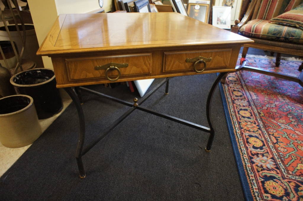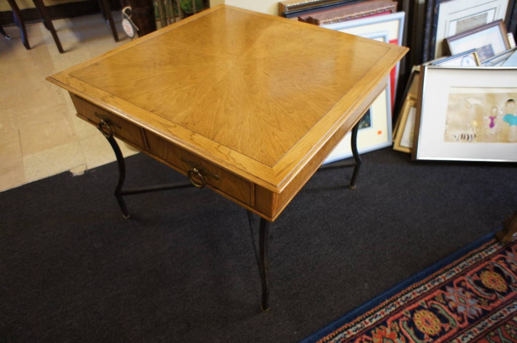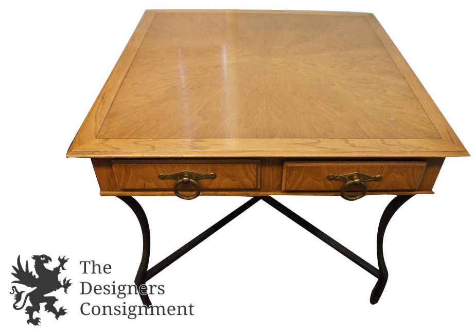 Vintage Pavane by Tomlinson Square Wood Side Table Iron Cabriole Legs 2 Drawers