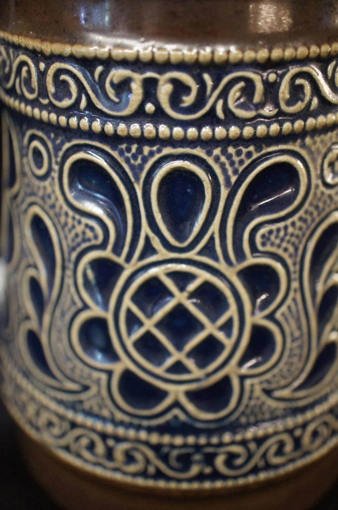 1 Rare Vintage M&R Flow Blue & Brown Lidded Handled Beerstein w/ Pewter Lid