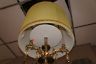 This is a beautiful retro swag light fixture. Oiled brass with green and clear prisms. A great look for any home.