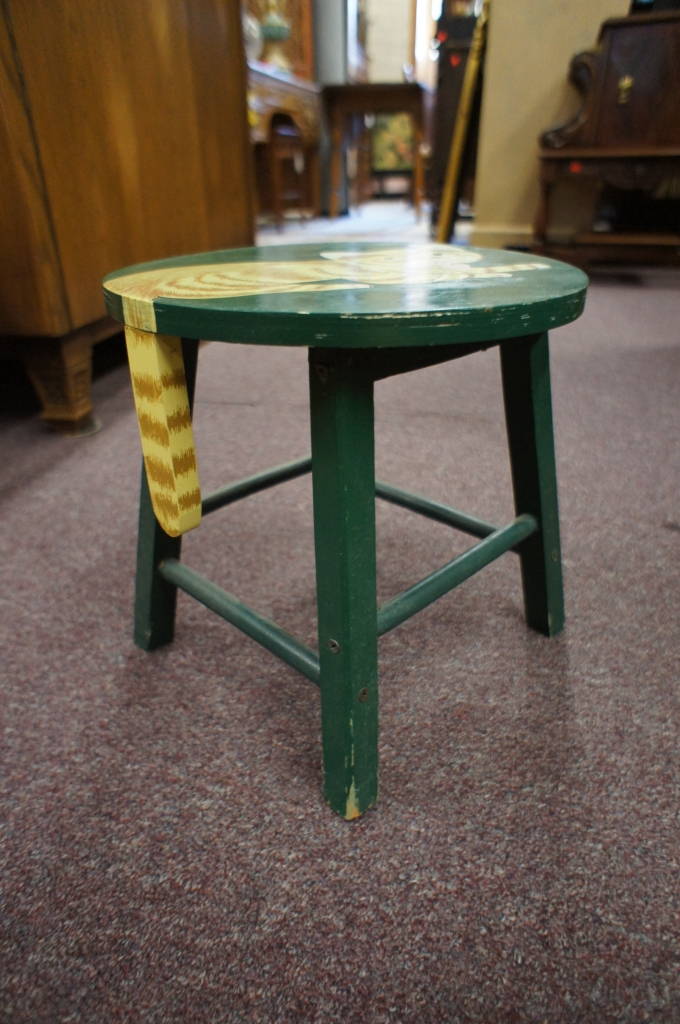 Unique Folk Art Hand Painted Cat Stool with Tail Green Seat Foot Step Wood Meow