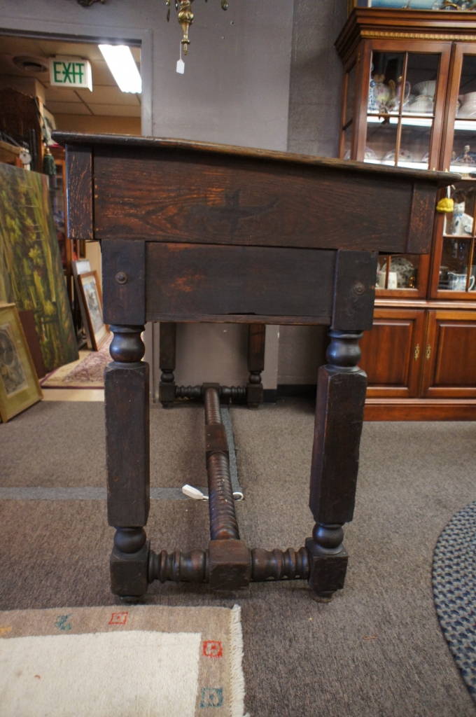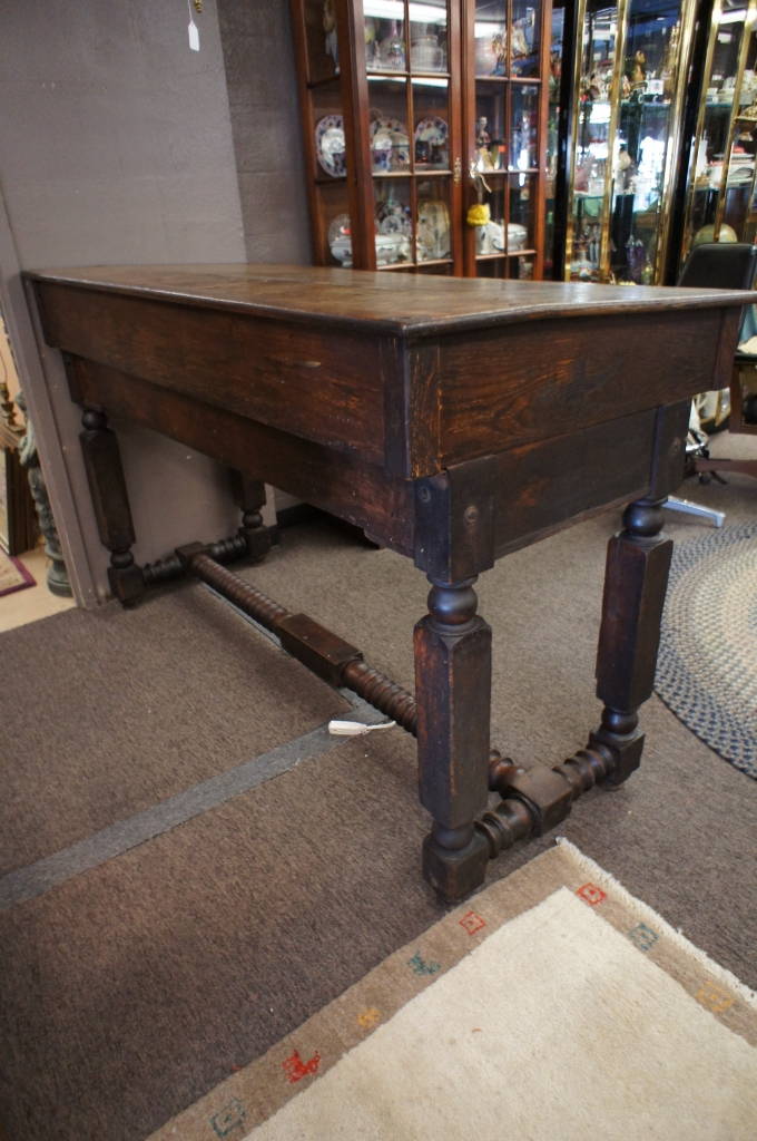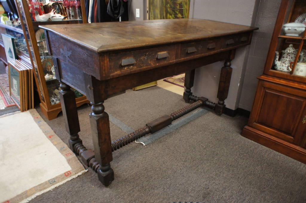 Large 1880s Shipping Desk Work Bench Trestle Table 3 Drawer Turned Slant Top