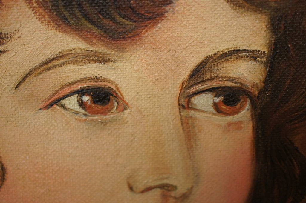 Vintage Canvas Art Of Classy Woman w/ Hat Signed Van Hook 16" x 20