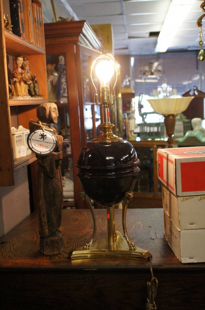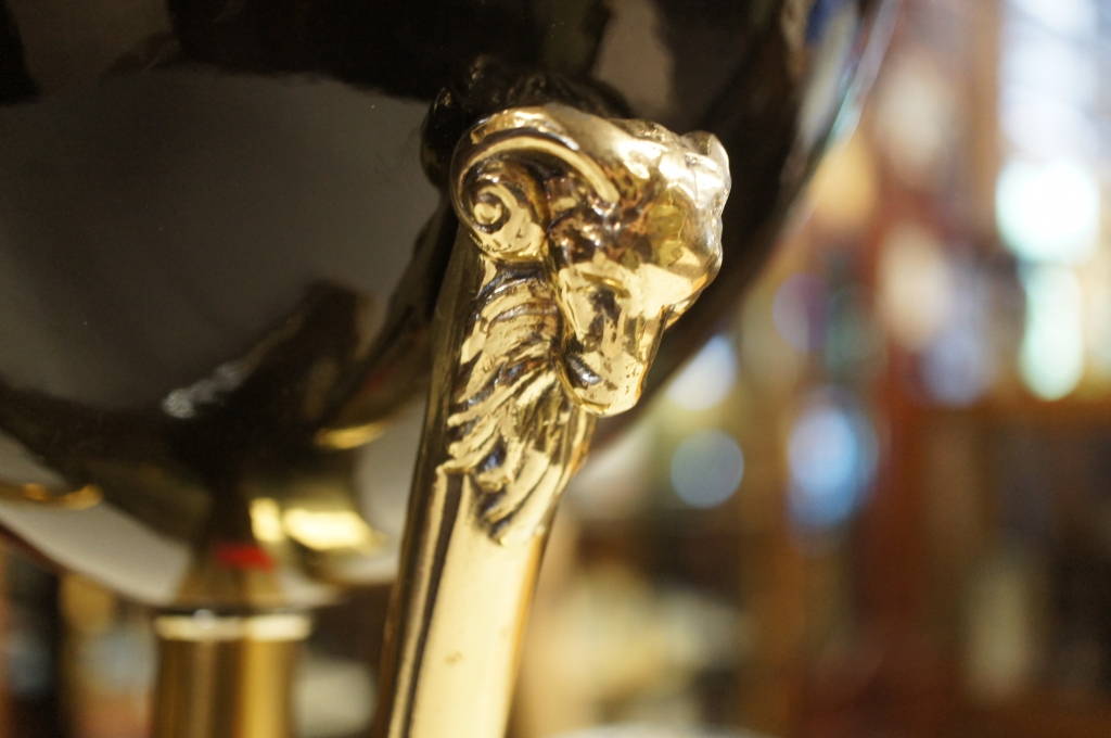 Beautiful Brass & Glass Stiffel Lamp W/ Three Ram Heads Acorn Shape Mid Century