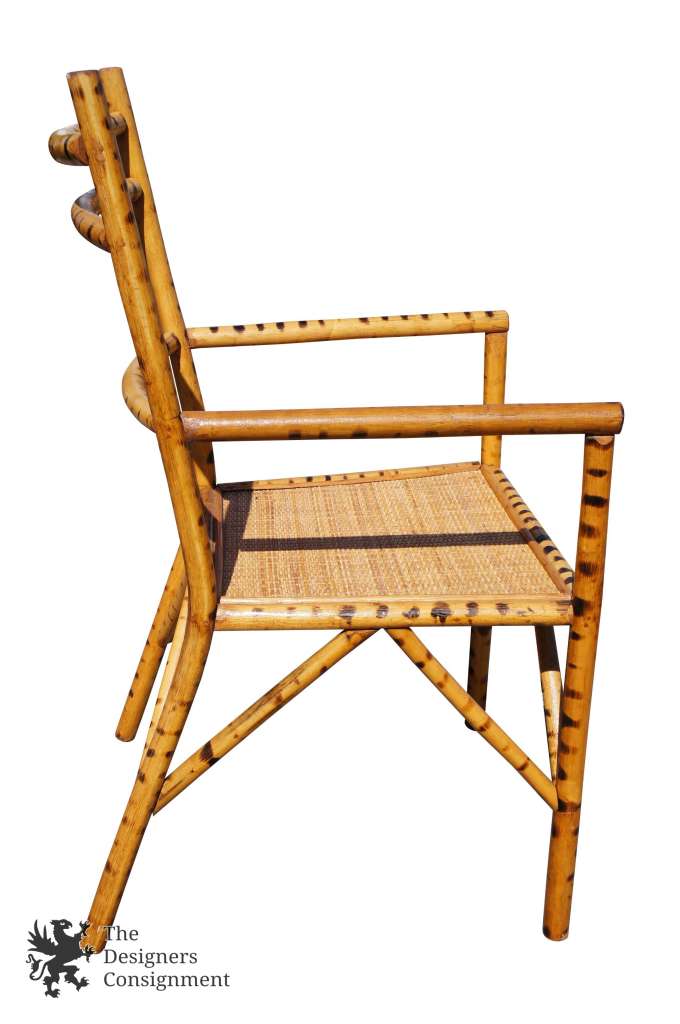 A unique Tortoise Shell Bamboo accent chair. Features a rattan seat.