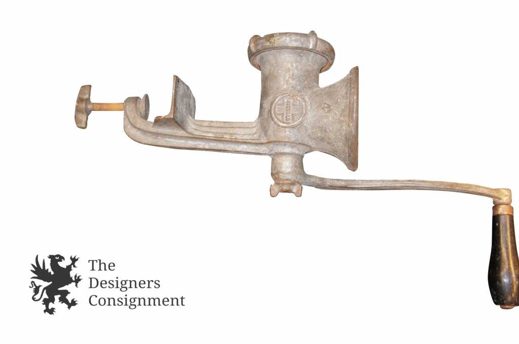 This is a great the company Griswold of Erie, Pennsylvania. It is an Iron meat grinder and it is table mountable. there are two part numbers that are visible one on the actual piece which is "1714" and the other is on the crank and it is "1744". This is an awesome piece and it would make a wonderful addition to your home as a decorative piece or to your collection.