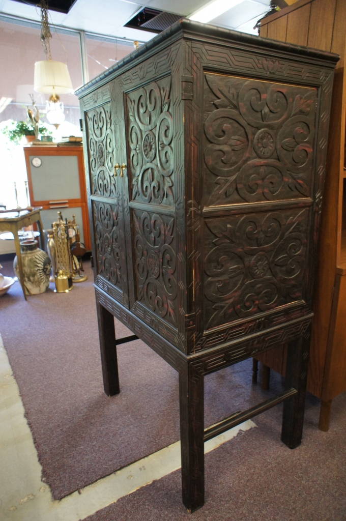 Nice Asian Style Carved TV Cabinet Entertainment Black Red Painted Doors Shelf