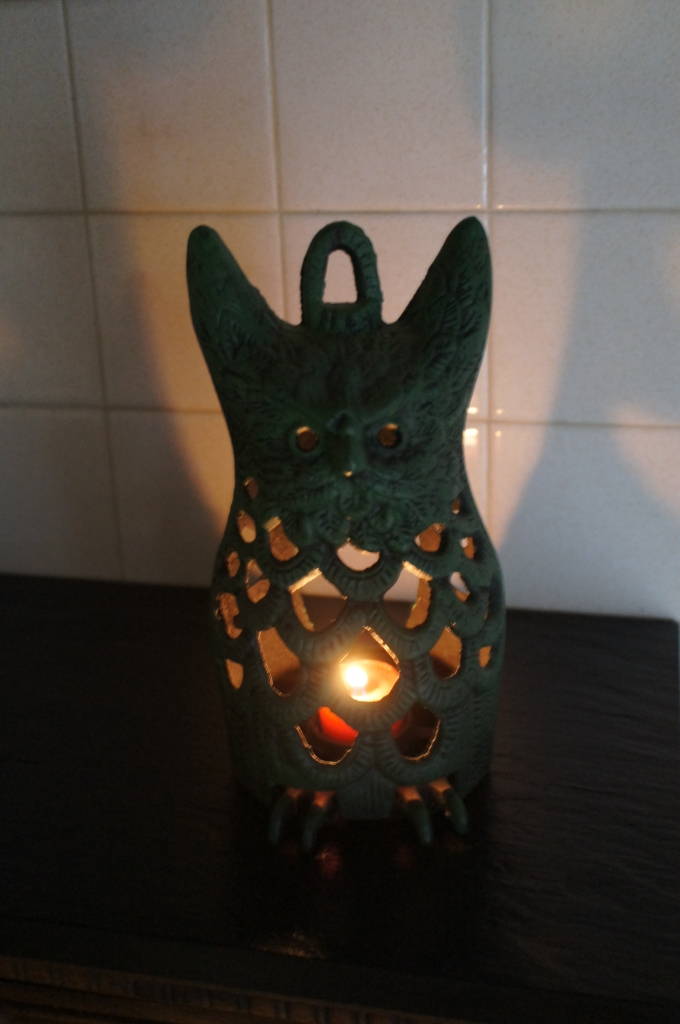 1 Rare Large Green Hanging Cast Iron Horned Owl Lantern Tealight Candle Holder