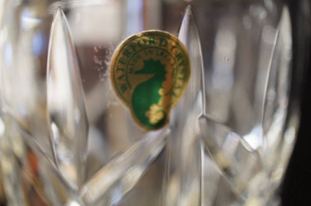 Ornate Pair Of Waterford Glass Lismore Crystal And Brass Lamps W/ White Shade