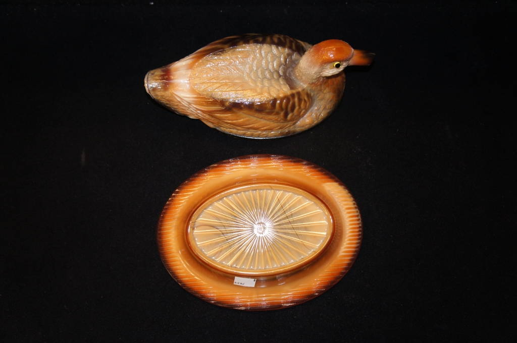 Westmoreland Slag Glass Swirled Caramel Duck Dish Candy Nest Decoy Very Detailed