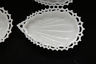 These are great pieces that we believe to be from the company Westmoreland. They are vintage Milk Glass shell bowls that are wonderfully scalloped and have a lovely lace trim and a gorgeous white color to them. This is a beautiful piece and it would make a wonderful addition to your home or collection.