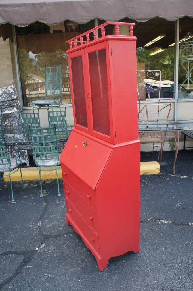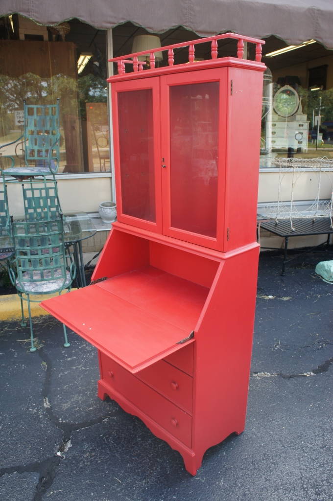 Fire Truck Red Flip Top Secretary And Glass Cabinet Unique Tall (W)