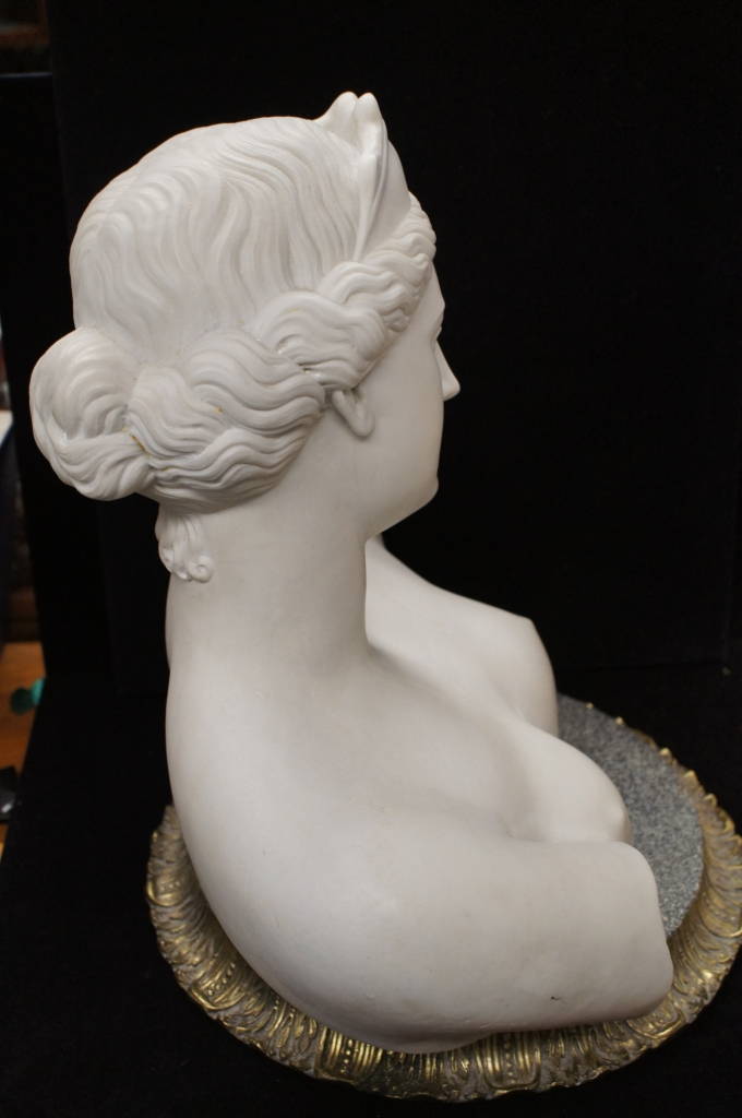 Unique Handmade Plastered Female Bust Statue W/ Brass Stand Natural Sculpture