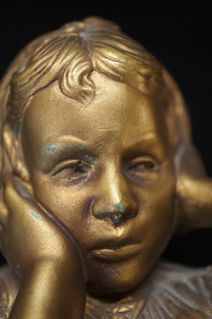 2 Antique Gold Bust Figurines Bookends Peter Piper & Girl Signed E. Villanis