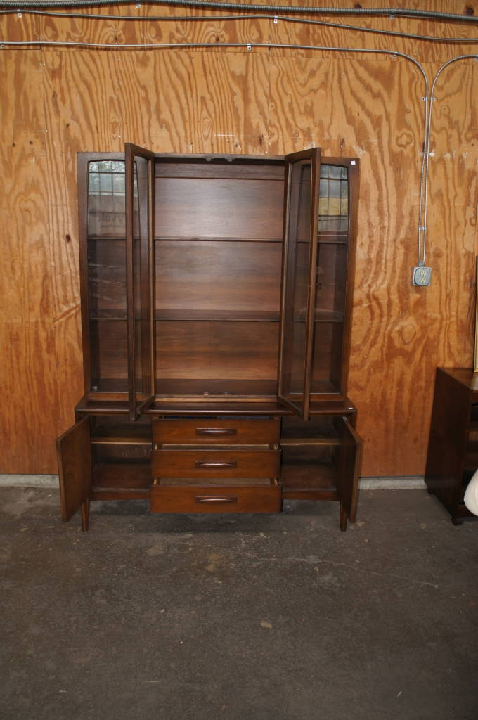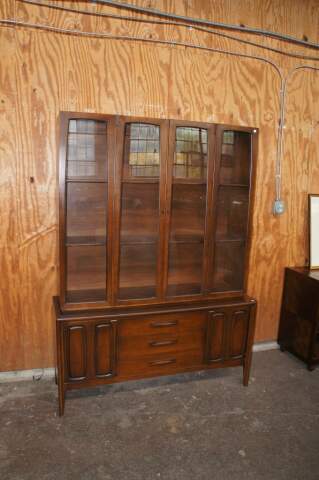 Broyhill Emphasis Danish Modern China Cabinet Walnut Finish Brasilia W/ Hutch