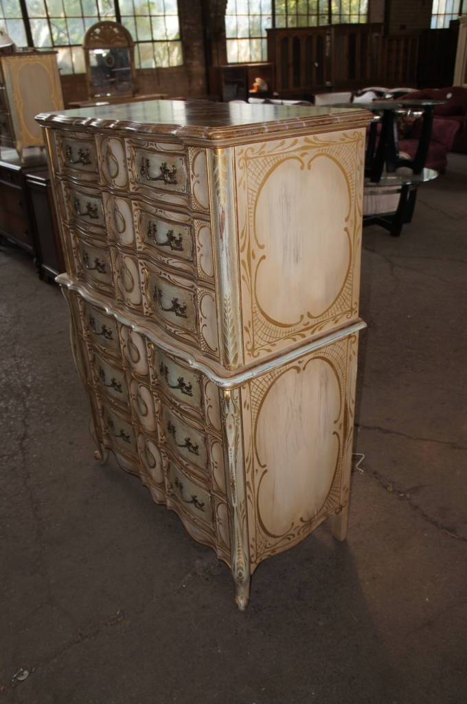 French Provincial Tallboy Chest Hand Painted Faux Marble Antiqued Serpentine