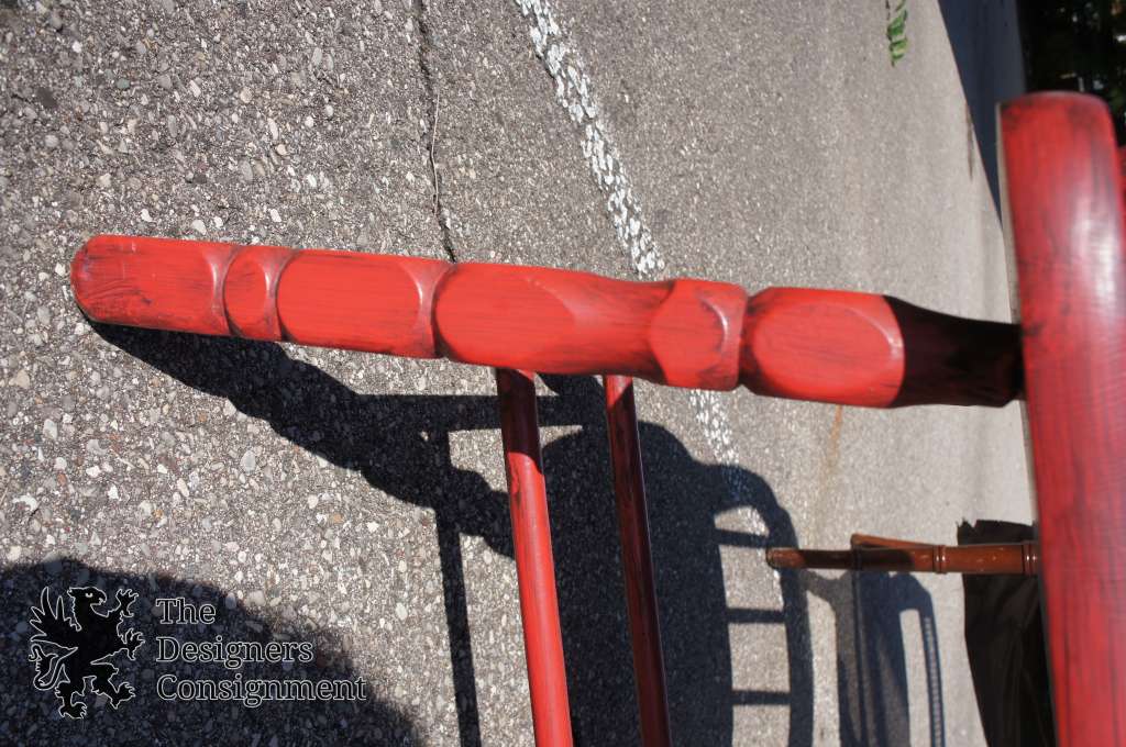 Vintage Wooden Arm Chair Red Painted Spindle Leg Low Back Country Primitive