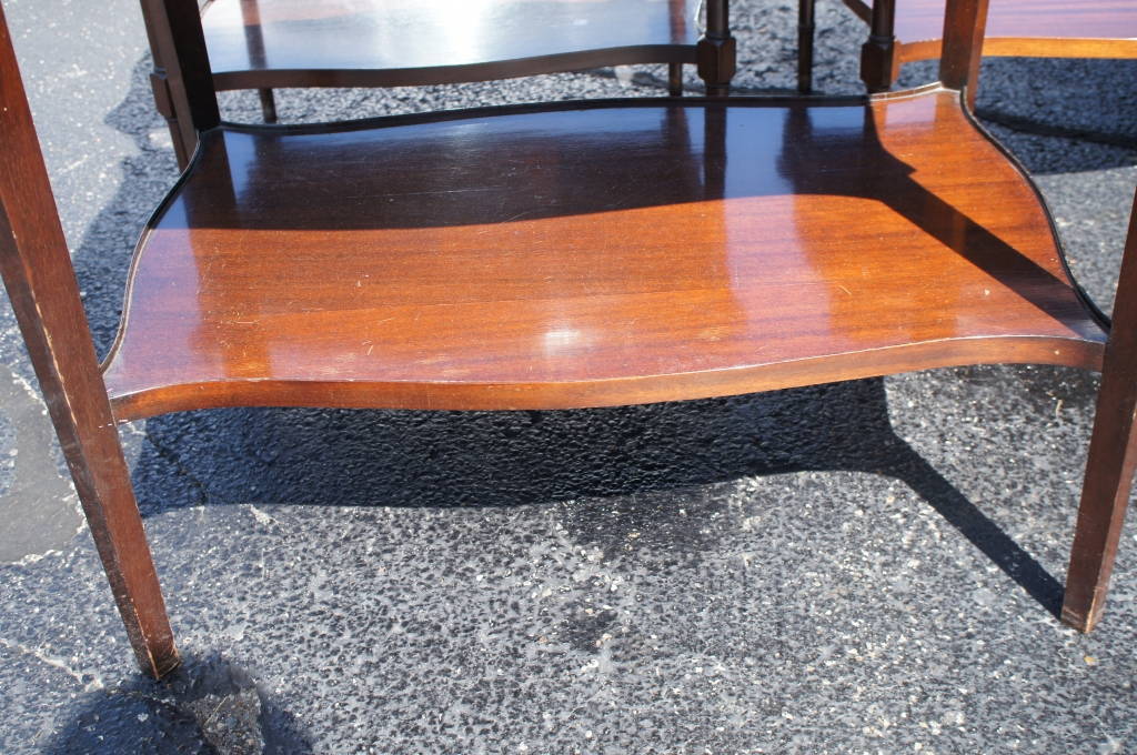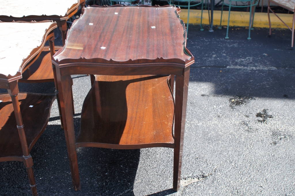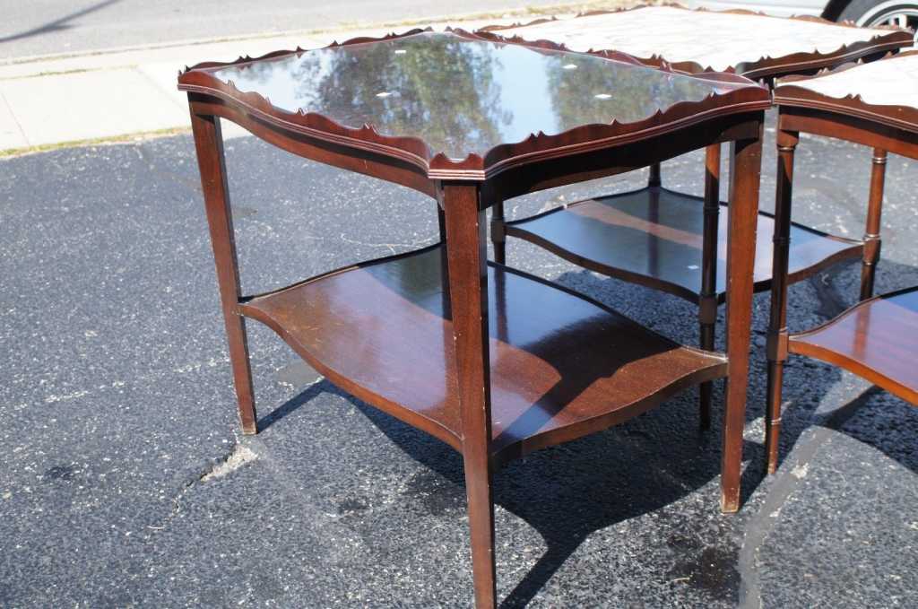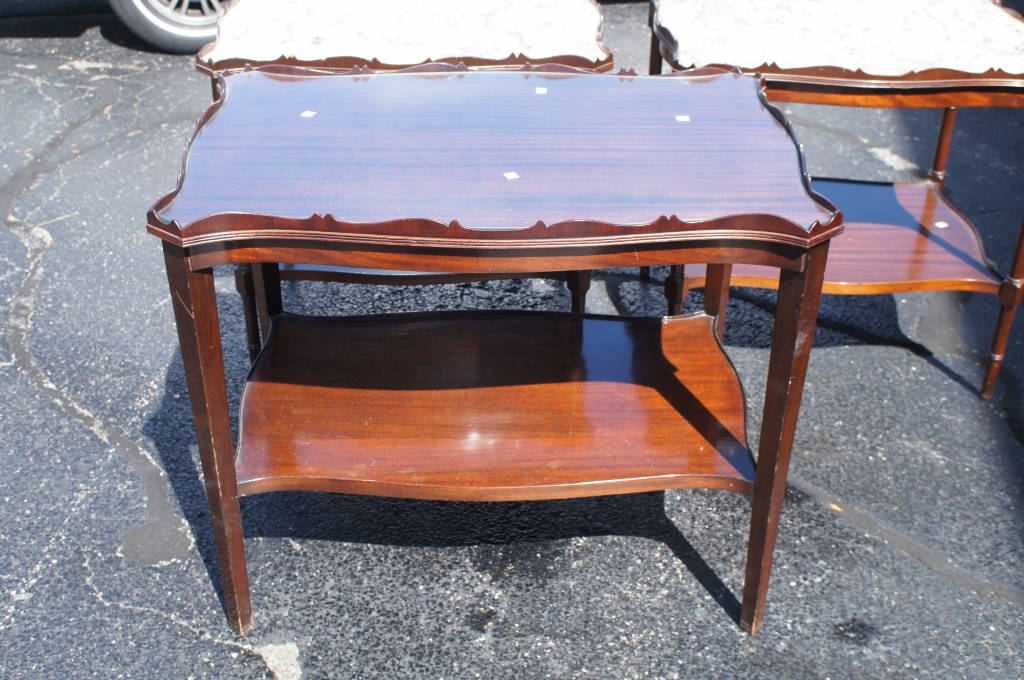 Here is a beautiful Mahogany end table. Features a custom glass top cut perfectly to fit the ornate medallion top. With a stunning wood grain it would be the perfect addition to any home.