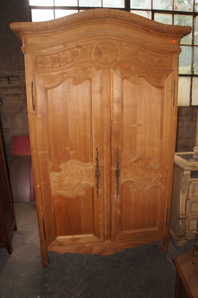 Large Hand Carved Ornate Teak Armoire Global Furniture Brass Lock & Key