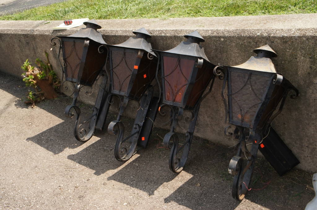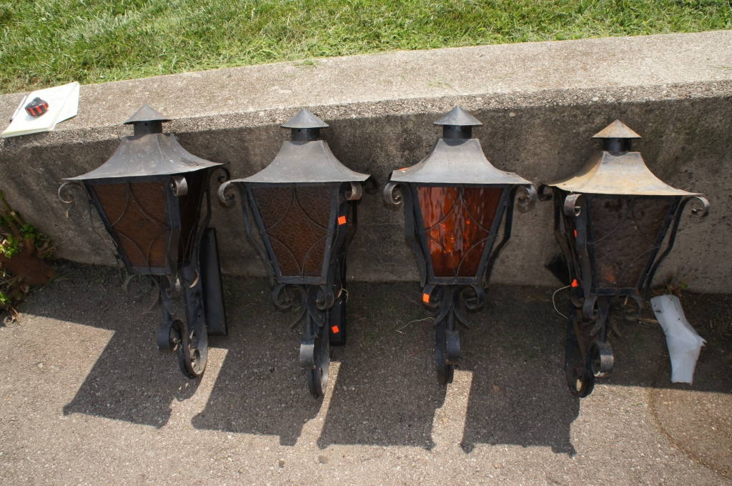 6 Antique 1920s Victorian Revival Wrought Iron Stained Glass Lanterb / Sconces