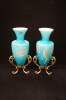 Pair Of 2 Handpainted Fenton Art Glass Landmark Collection Turquoise Vases