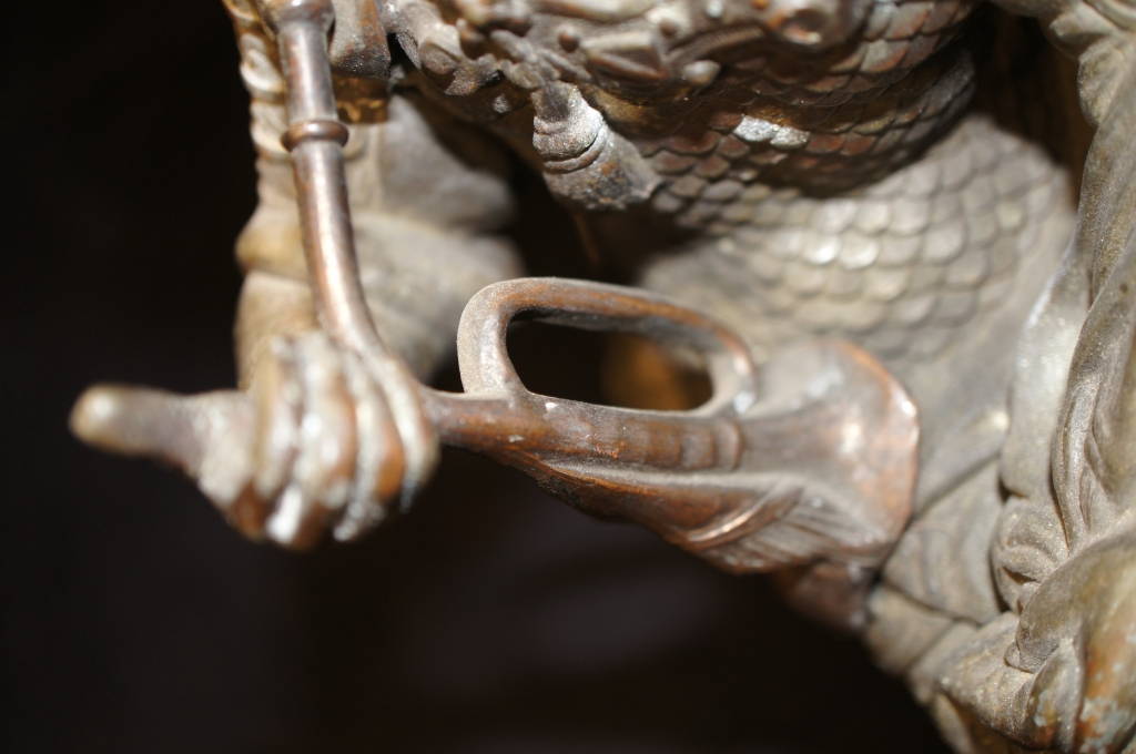 Vintage Spelter Bronze Greek Revival Figurine w/ Horn On Bench 9.25" Tall