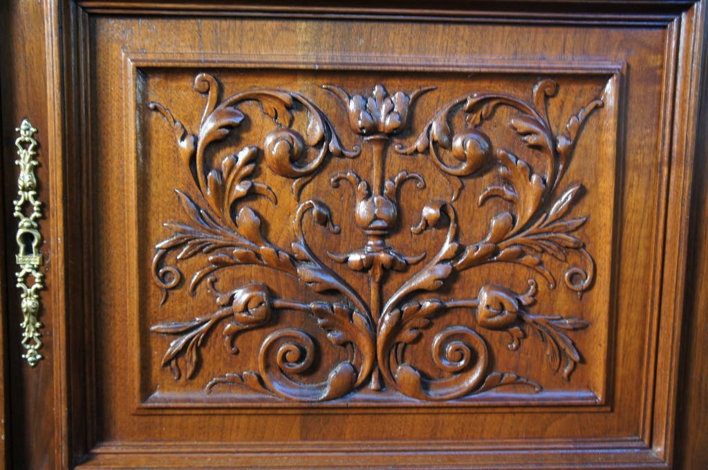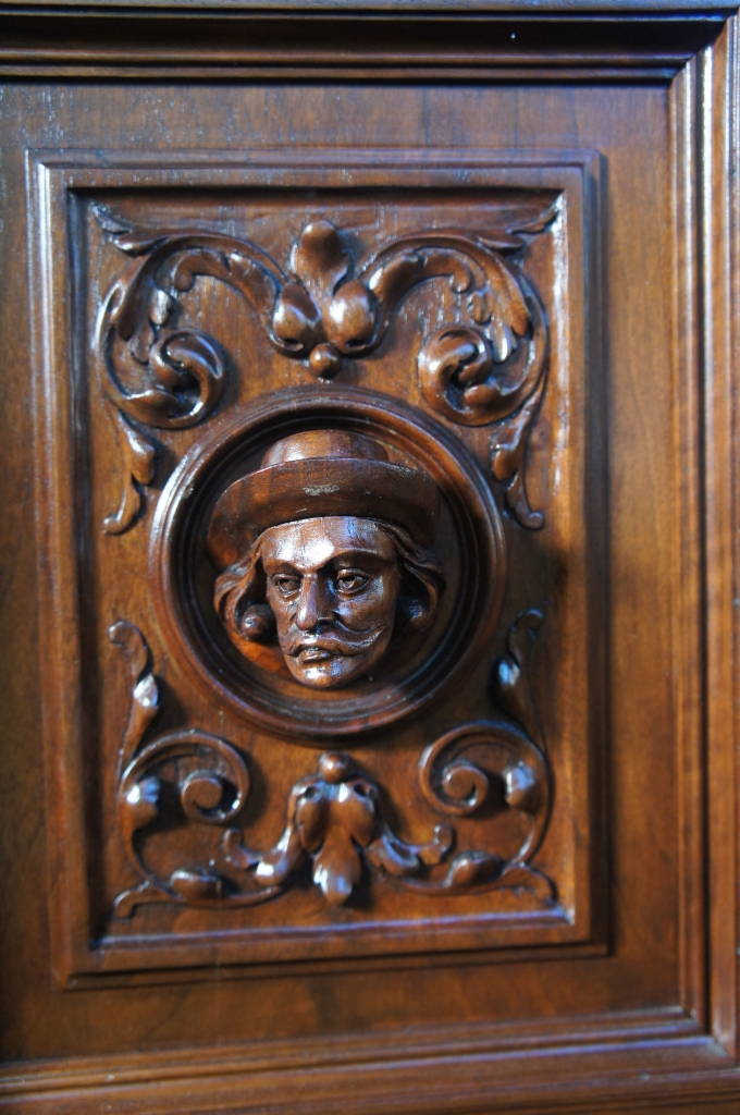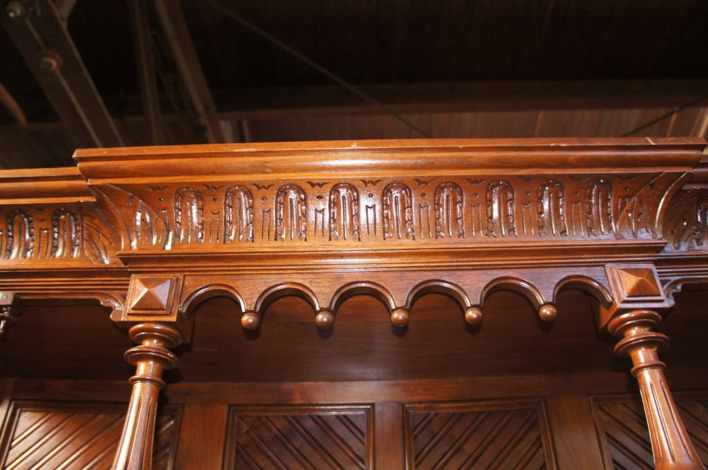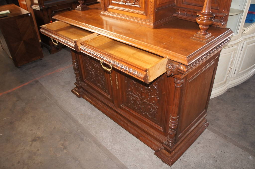 Renaissance Revival Hand Carved Server Aesthetic Floral Hutch W/ Faces Finial