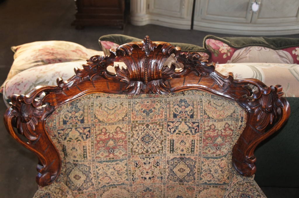 Antique French Rococo Upholstered Arm Chair Baroque Ornate Acanthus High Relief