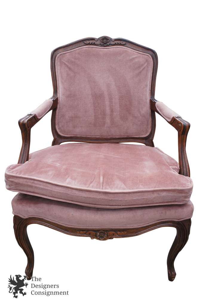 Vintage Lewittes Furniture Louis XV Style Fauteuil Accent Chair Mahogany Carved