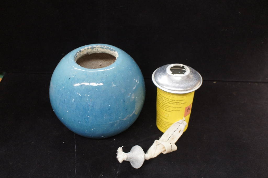 1 Round Vintage Ceramic Pottery Handmade Deck Patio House, removed