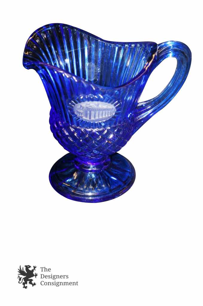 This is a great Cobalt Blue Mount Vernon Creamer/Pitcher from Avon. This piece has a gorgeous color and look and it would make a wonderful addition to your home or collection.