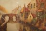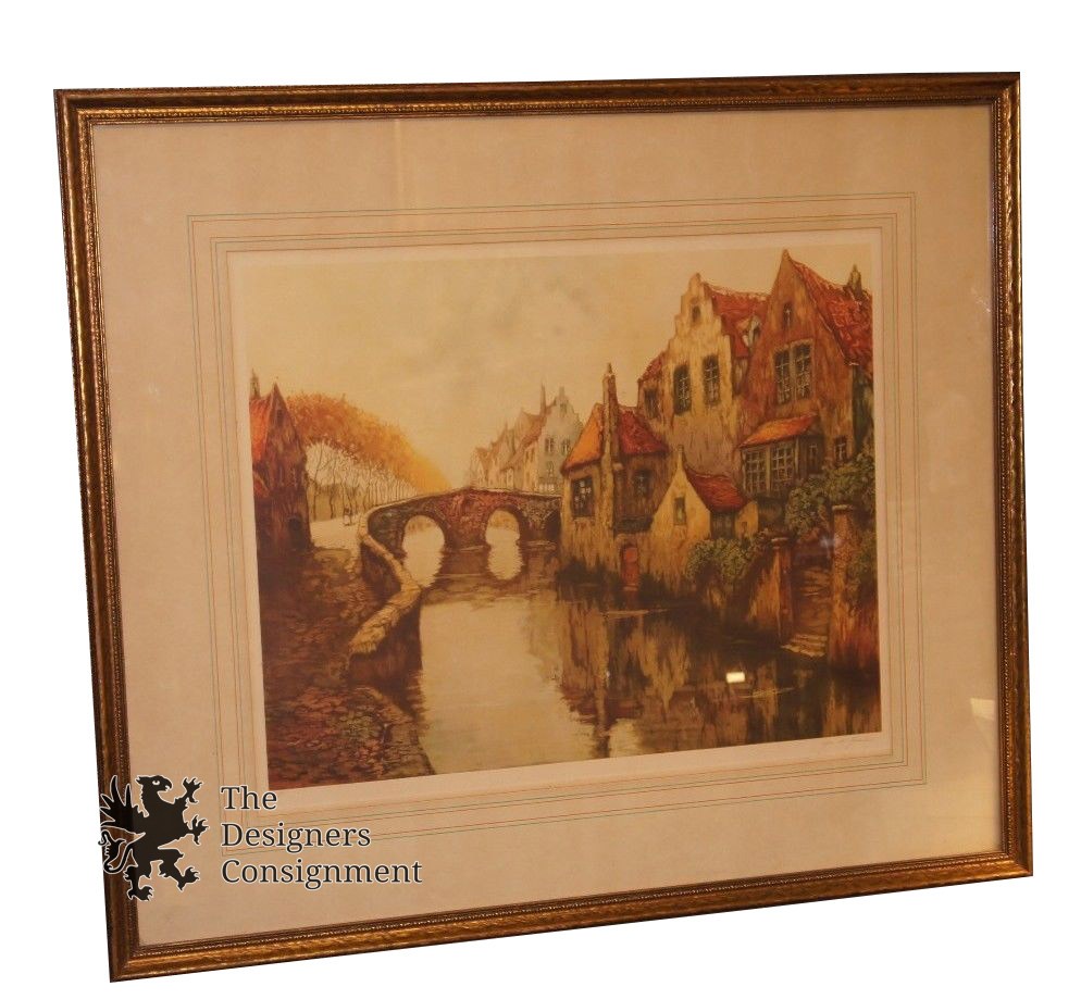 Here is a beautiful rustic river print. Features houses along the river leading up to a bridge with wonderful reflections. The print has a unique matte and gilded frame