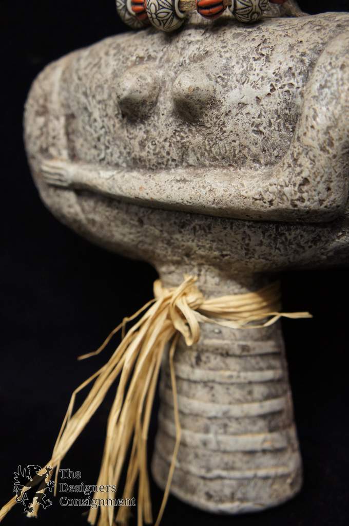 Primitive Wall Decor Art Female Figure Totem Island Beaded Necklace Gray Stone